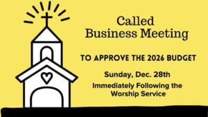 Following worship service, there will be a Special Called Business Meeting to approve our 2026 church budget.